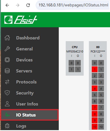 Accedendo alla pagina web IO Status dello SlimLine è possibile visualizzare le informazioni di tutti i moduli di estensione connessi con lo stato degli I/O digitali sia del modulo CPU che dei moduli di estensione.